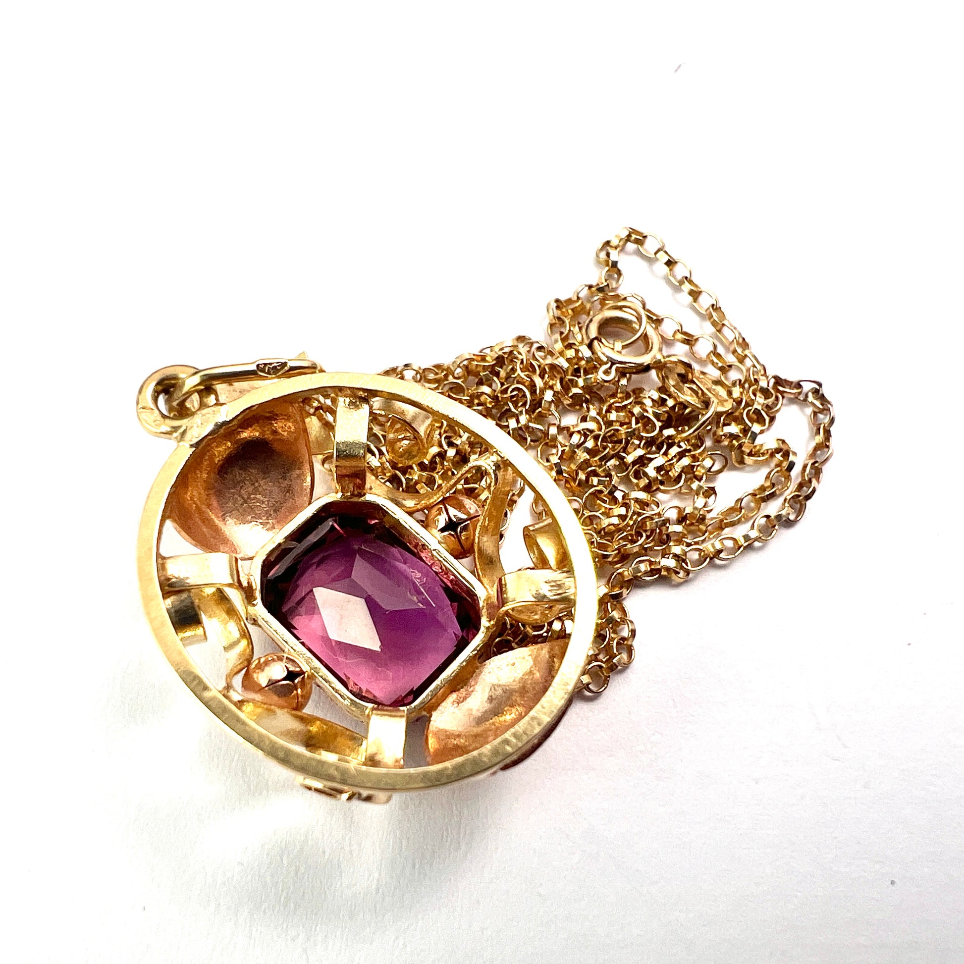 1940s 14CT Amethyst Paste Gold Pendant Necklace