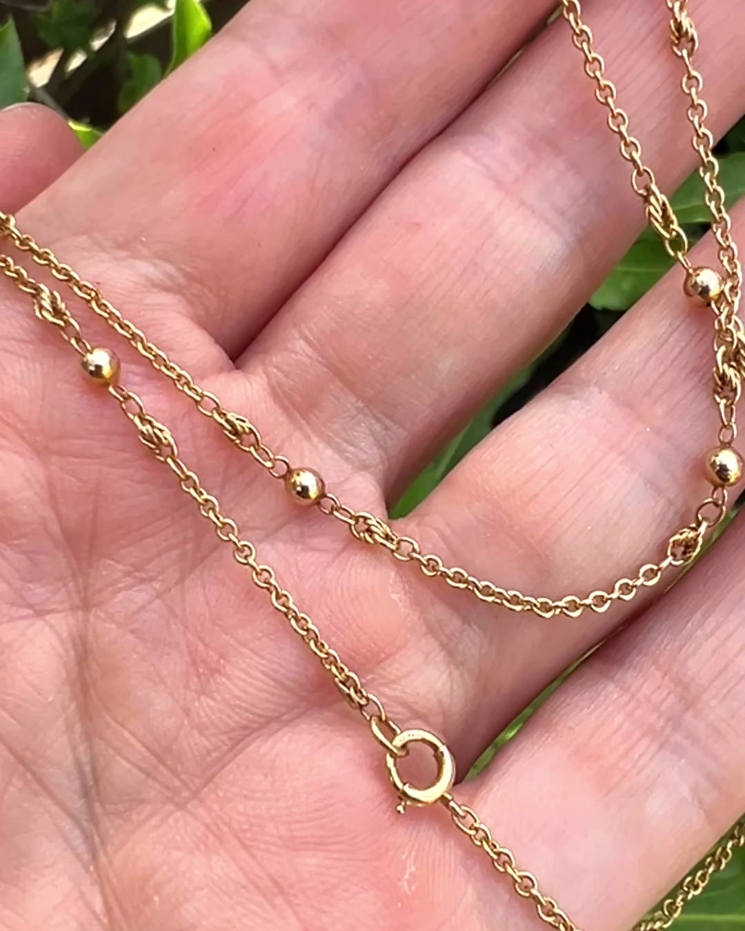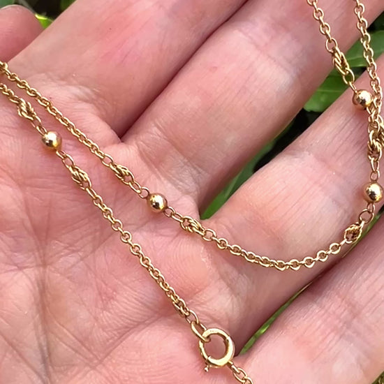 An extremely pretty solid nine-carat gold antique chain with cable links interspersed with gold balls and Prince of Wales chain detail.