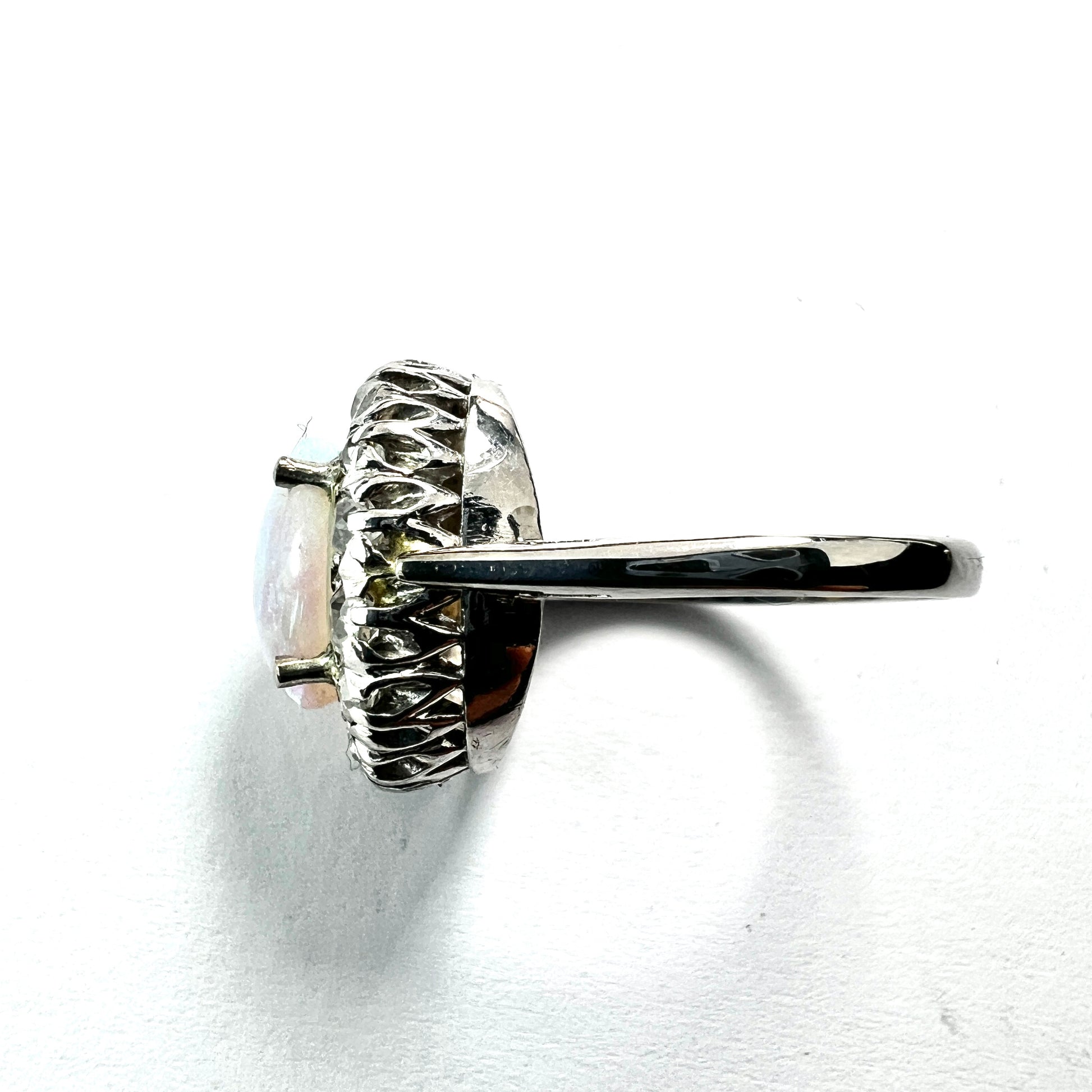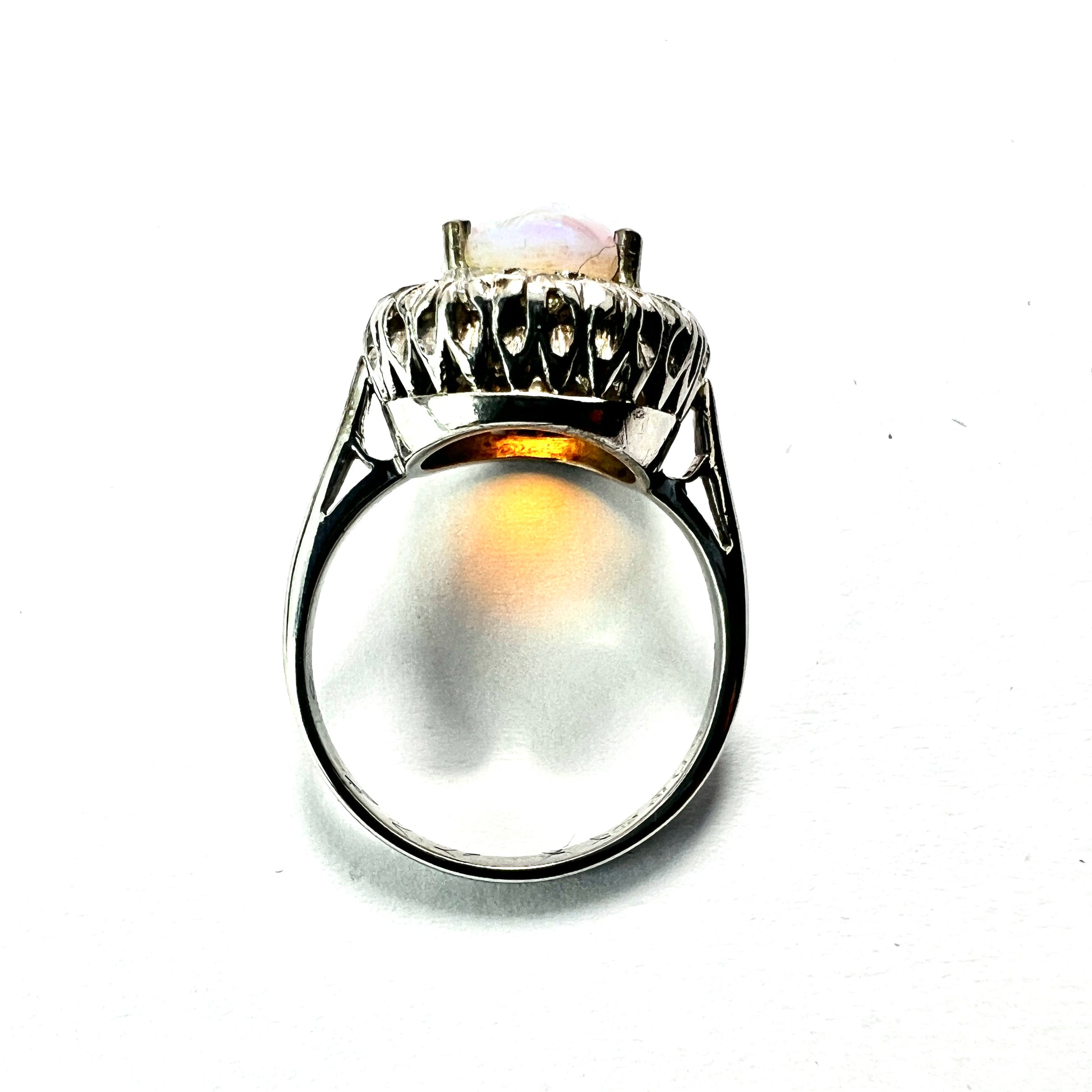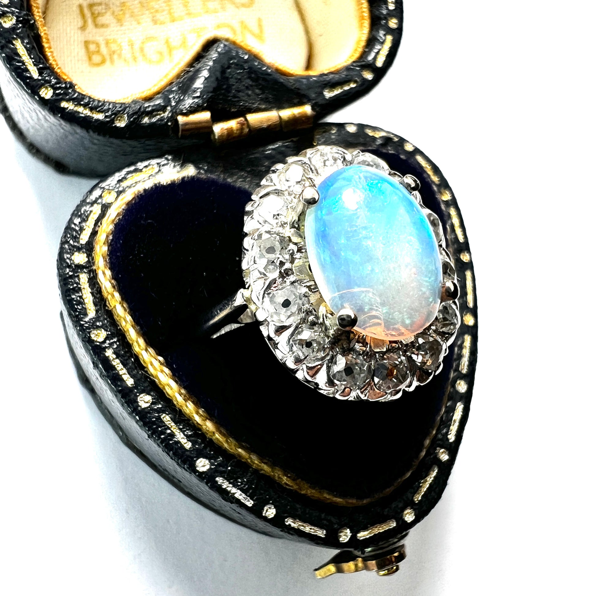 SIZE: I and a half (UK), 4 and a half (US). The face of the ring measures approximately 1.5 x 1.3cm and it sits around 1cm above the finger. The opal is 9 x 7mm, surrounded by 14 diamonds of approx 2mm.