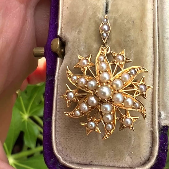 Small Edwardian 18CT Gold Pearl Sunburst Pendant/Brooch