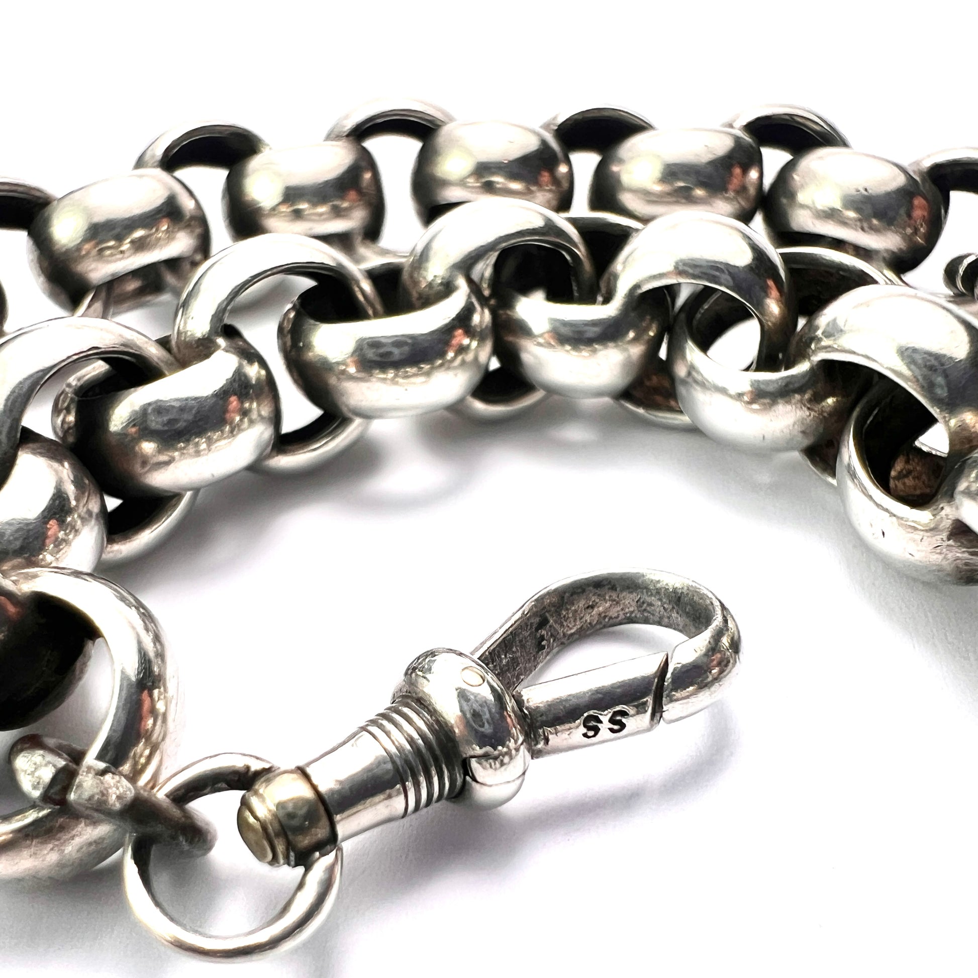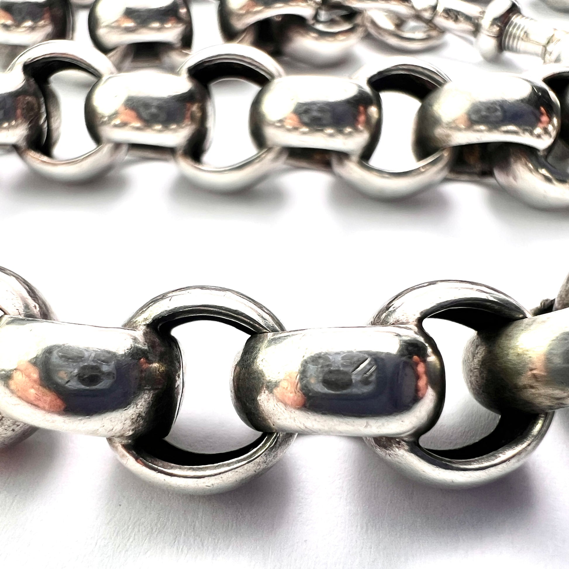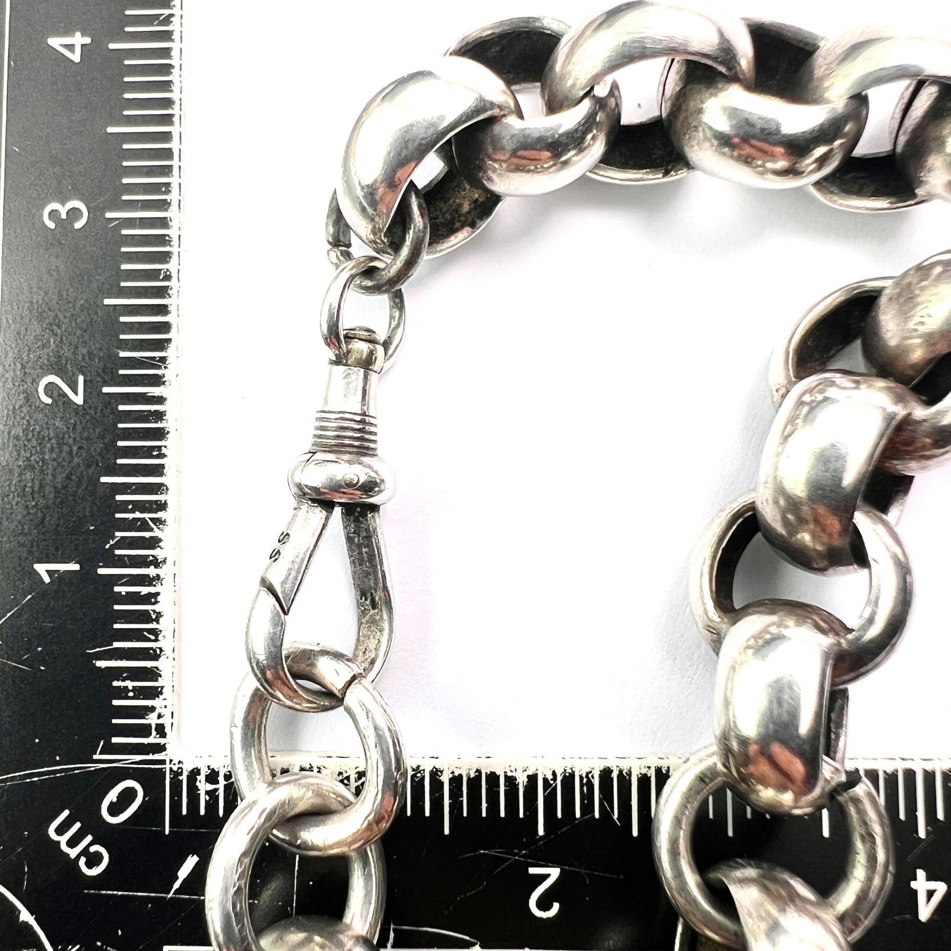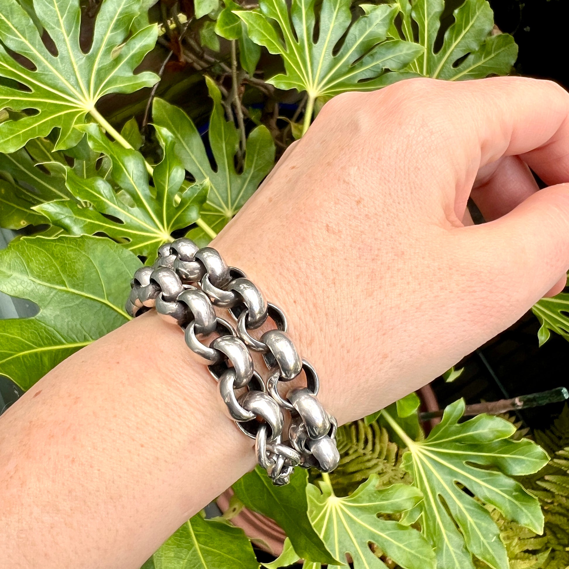 A fantastic super-chunky Victorian chain which fastens with a dog-clip swivel clasp. It's a short choker length and works equally well as a bracelet doubled around the wrist.