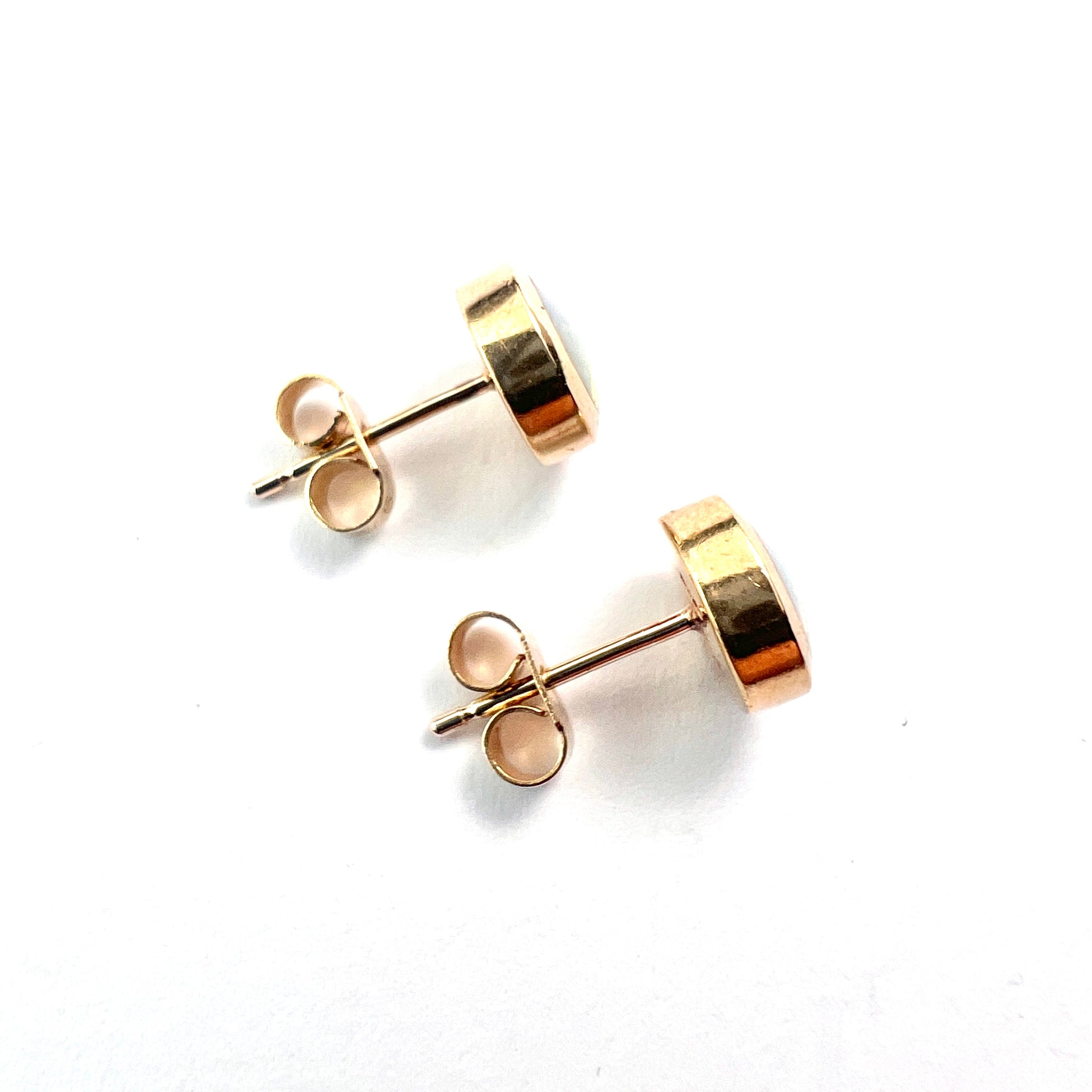 A pair of beautiful opal stud earrings in solid 18-carat gold. The opals are a lovely colour, predominantly pale blue/green, with a nice play of red/green fire.