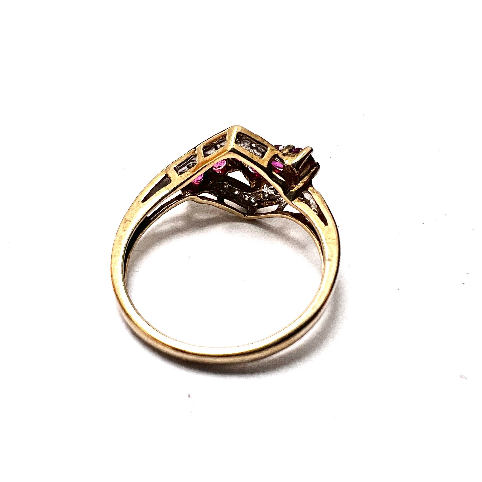 Vintage 9CT Gold Diamond and Rubellite Ring