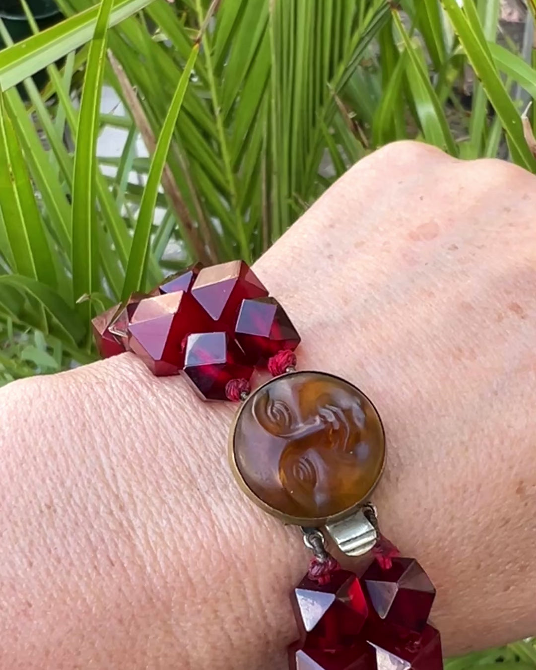 Vintage Man in the Moon Cherry Amber Resin Bracelet