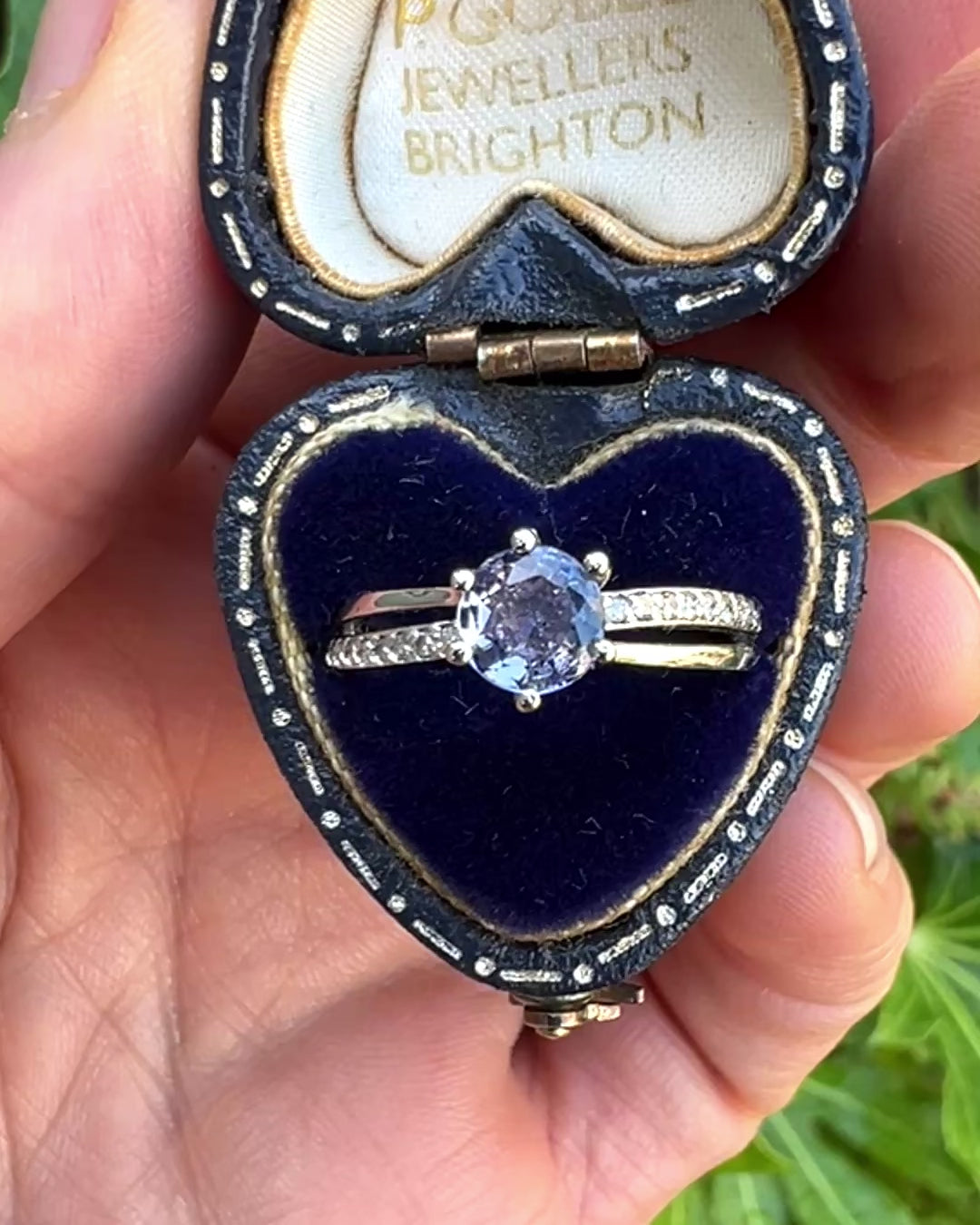 Vintage Tanzanite and Diamond 14CT White Gold Ring