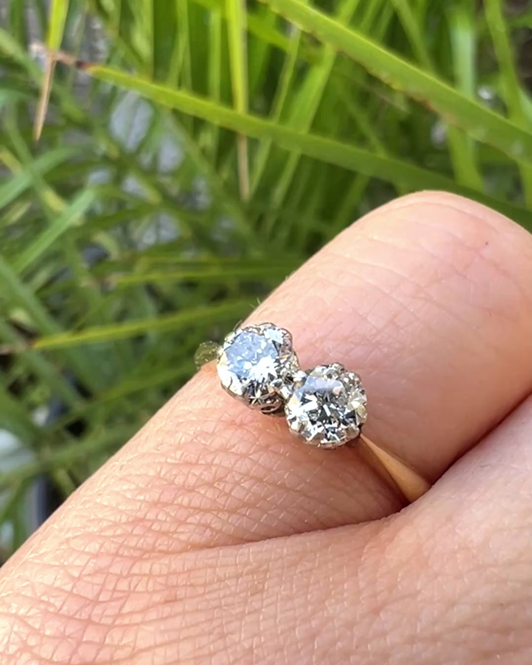 “Toi et Moi” (French for “you and me”) is a romantic style of ring with two round stones commonly found in engagement rings from the early 20th century, symbolising two intertwined souls.